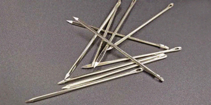 Иглы ручные для работы с кожей и мехом. Они отличаются заострённым трёхгранным кончиком, грани которого прорезают основу меха (кожу) после прокола, благодаря чему игла не «вязнет» в материале.